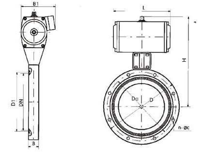 | GIQ氣動高真空蝶閥外形及連接尺寸: |