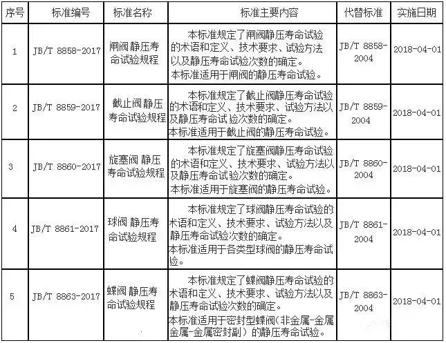 新規(guī):最新公布5項閥門標準!2018年4月1日實施