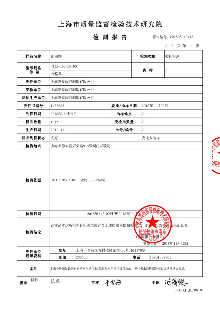 2019/6/24-H41X消聲止回閥檢測報告—上海冈本视频网站閥門廠(chǎng)有限公司
