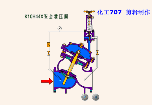 安裝於管路中,主要穩定出口壓在設定範圍,保(bǎo)證出口壓力(lì)不因進口壓力的變化而變化,當出口壓力低(dī)於設定值時,閥瓣在彈簧(huáng)力(lì)的作用打開,水流通過,當出口壓力升至設(shè)定值時,出口壓直接傳遞(dì)於膜片(piàn)下方,與彈簧形成對抗(kàng)使閥瓣關(guān)閉,切斷通水。
