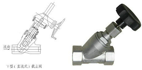 3,直流式或Y形截止閥中,閥體的流道(dào)與主流道成一斜(xié)線,流體(tǐ)阻力較小,多用於含固體顆粒或粘度大的流體。